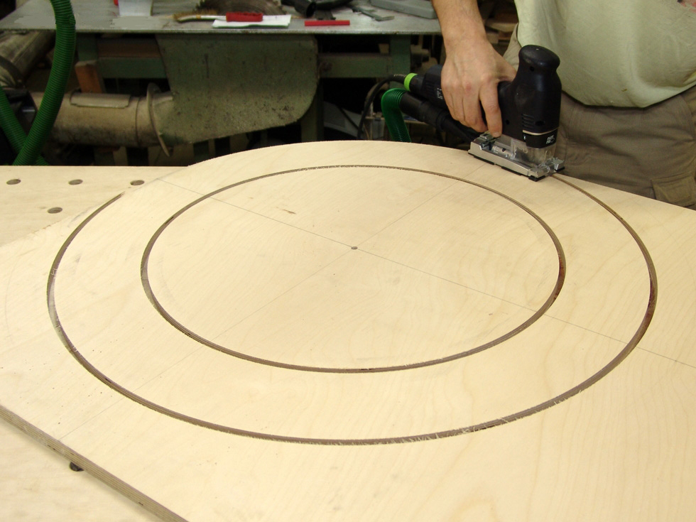 Стоит учесть, что внешняя кромка архивольта обрабатывается в необходимый размер, а внутренняя кромка обрабатывается с припуском в 2-3 мм на дальнейшую обработку. Фрезеровка пазов при изготовлении архивольта может проводиться не полностью. С половины глубины их можно прорезать лобзиком, не забывая оставлять небольшой припуск на подгон.