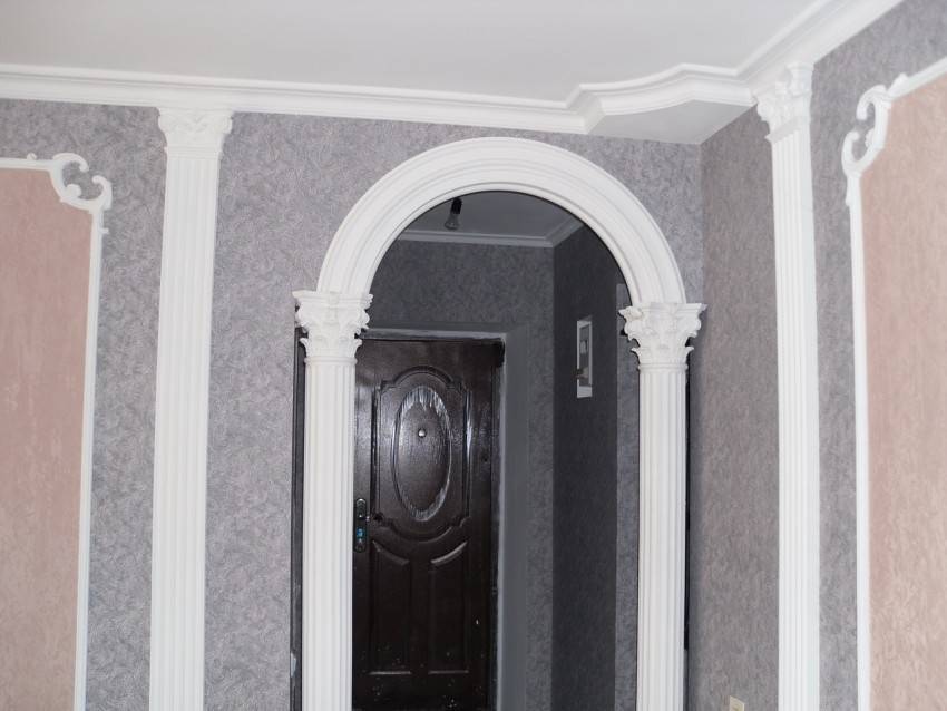 Придать квартире завершенный вид можно и иными способами. Очень часто для облагораживания арочной конструкции используется недорогой, легкий и удобный в работе пластиковый уголок либо молдинг.