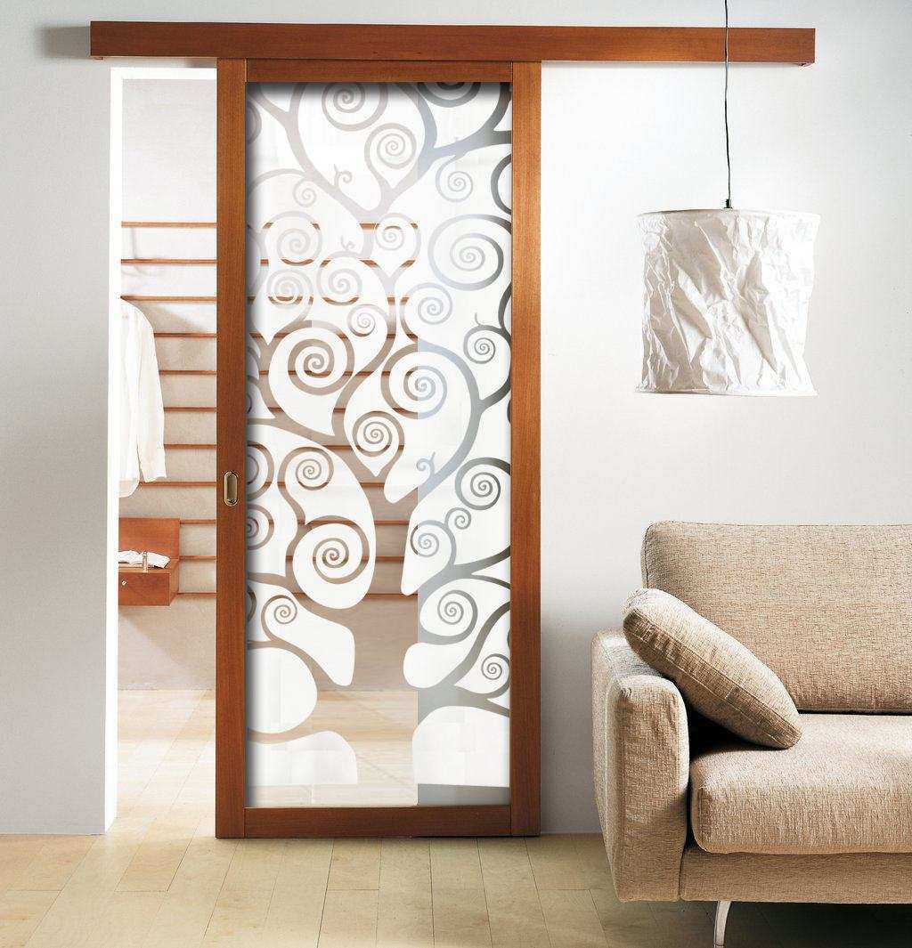 Они могут состоять из одной или двух створок. Работают они по единой схеме: двигаются вдоль вертикальной поверхности. Разница лишь в том, что у двустворчатых дверей полотна расходятся в разные стороны. Стоит отметить, что данная модель экономит пространство, украшает ваш интерьер. Она идеально подойдет для гостиной, детской, кухни, гардеробной.