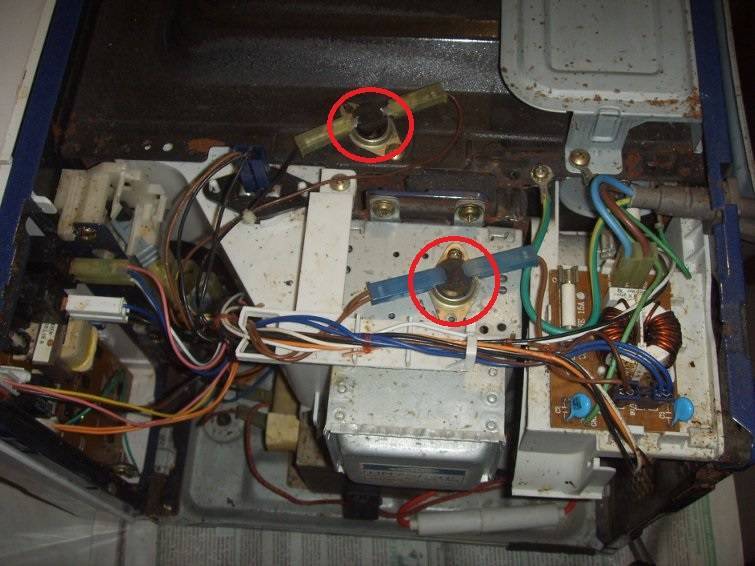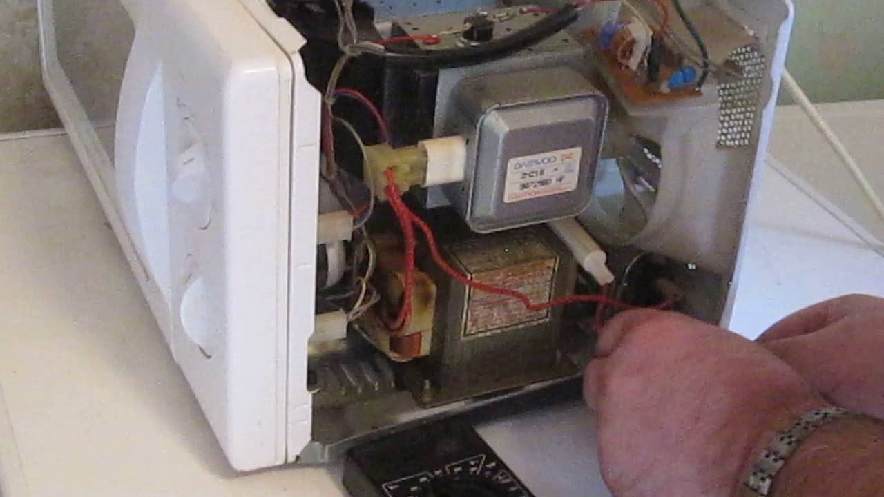 С обрывом нити накала все крайне просто. Для начала надо взять стандартный тестер, перевести его в режим замера сопротивления (желательно в один из первых), и дотронуться щупами клемм питания магнетрона, заранее отключив хотя бы одну из них от линии питания. В случае исправности нити накала, тестер покажет ориентировочно 2 – 3 Ома. Если же нить оборвана, то устройство передаст «бесконечность», другими словами, никак не среагирует на касание щупов к клеммам магнетрона.