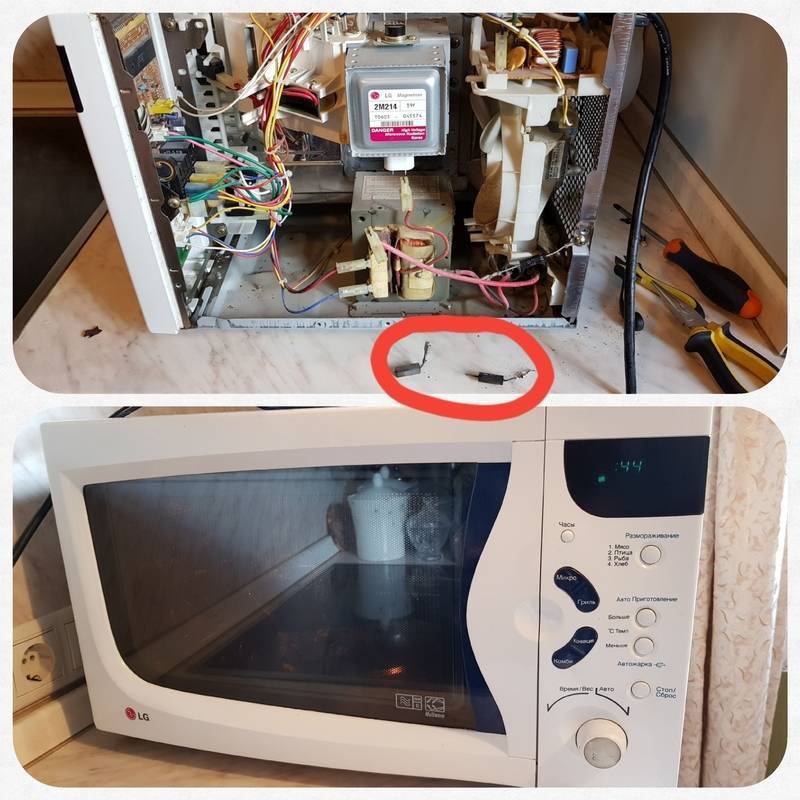 Если вы проверили, перебрали все вышесказанное, почему не работает микроволновка? Причина может оказаться гораздо серьезней — и требовать такого же серьезного ремонта внутренних деталей техники.