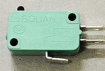 Чтобы СВЧ печь не могла работать с неплотно прикрытой дверкой, ставят блокировочные микропереключатели. Пока их кнопки не нажаты (дверки не закрыты), питание не подается. При открытии дверки цепь питания разрывается мгновенно. Одна из причин того, что микроволновая печь не включается — поломка или залипание этих небольших по размеру деталей.
