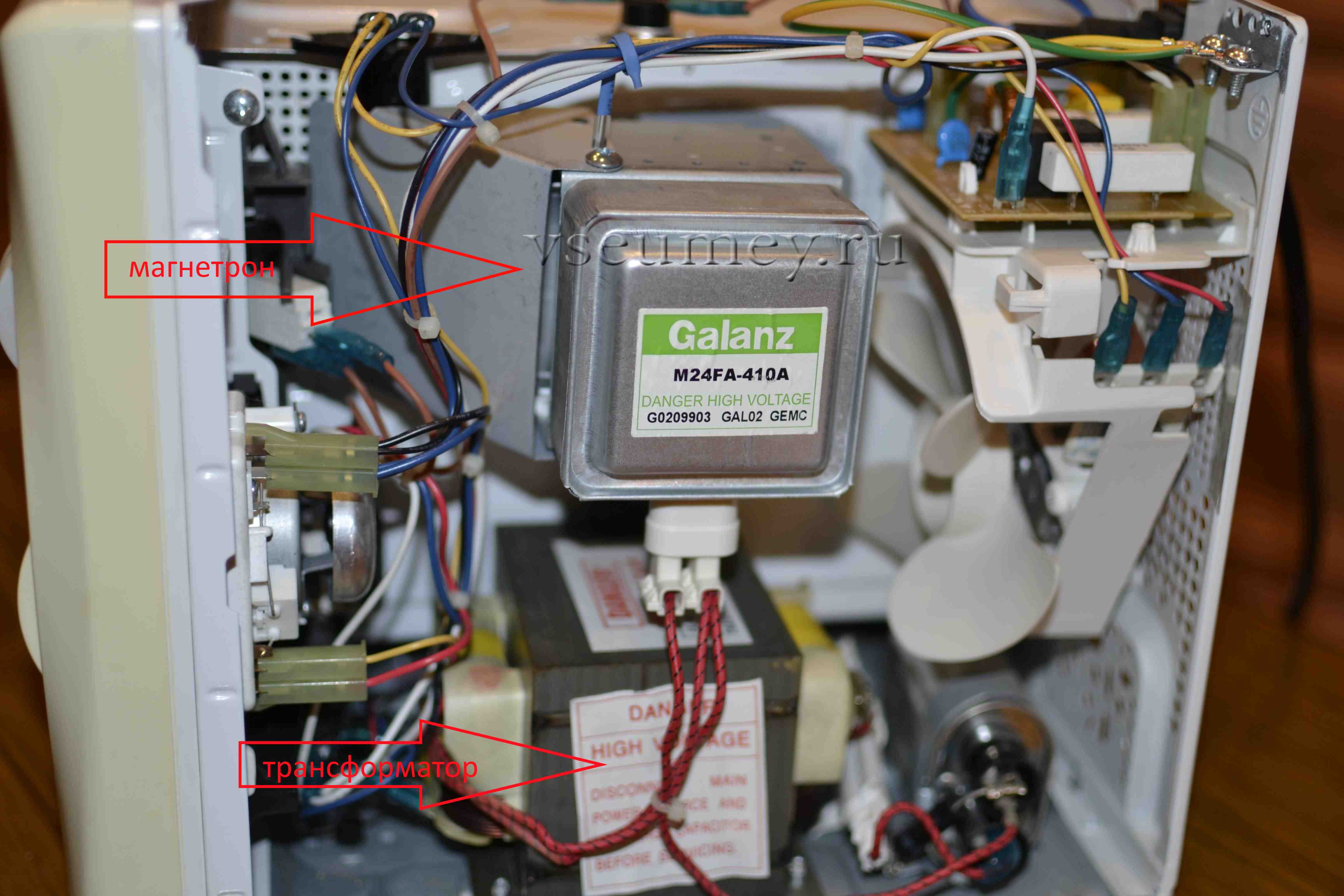 Кстати, при неполадке магнетрона обычно слышится шум и жужжание, а при вскрытии – с боковой стороны заметны трещины и окалины.