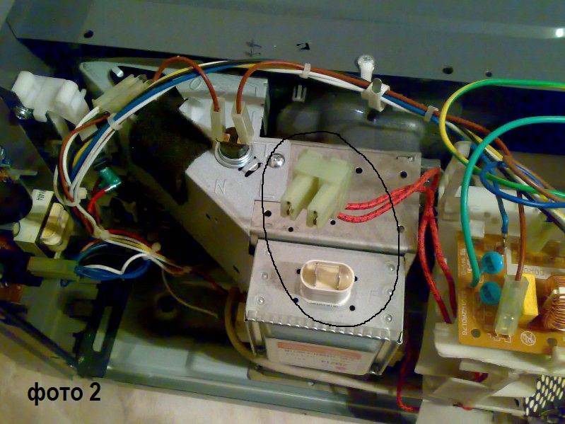 Чтобы удостовериться в обрыве до конца, осторожно снимите крышку фильтра магнетрона и убедитесь в том, что катушки фильтра прочно объединяют не только клеммы питания с проходными конденсаторами, но и выводы магнетрона. Нередко бывает так, что ввиду некондиционной сварки, одна из катушек отделяется от вывода проходного конденсатора либо от вывода магнетрона
