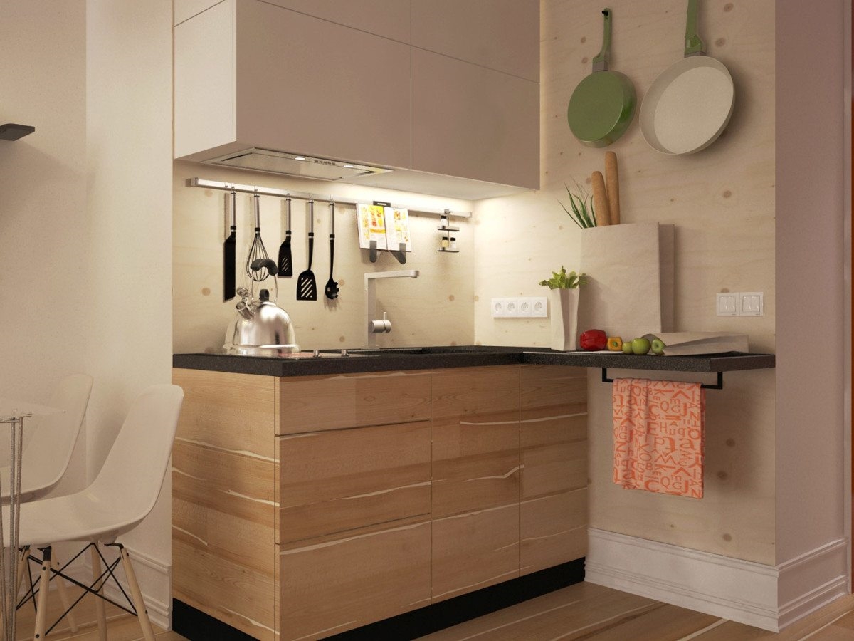 Основная идея мини-кухни – сделать ее как можно удобнее и функциональнее. Здесь на помощь приходят и готовые решения, где все нюансы предусмотрел производитель, и многообразие корпусных шкафов. Правда, во втором случае придется все продумывать самостоятельно, но так Вы сможете сделать мини-кухонный гарнитур «под себя».