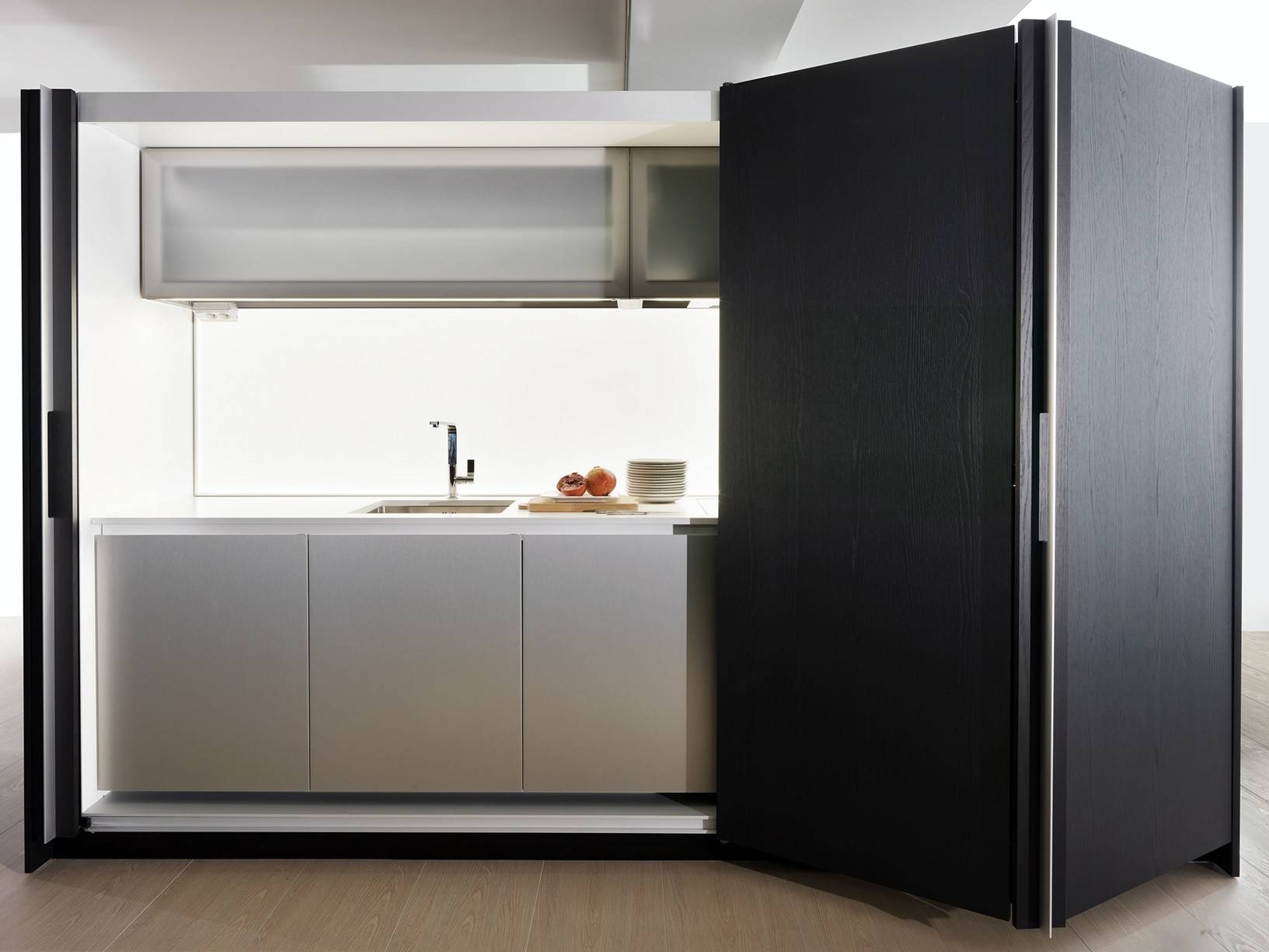 Производители мебели предлагают готовые решения с уже встроенной техникой, например, как эта мини-кухня, выполненная в виде шкафа
