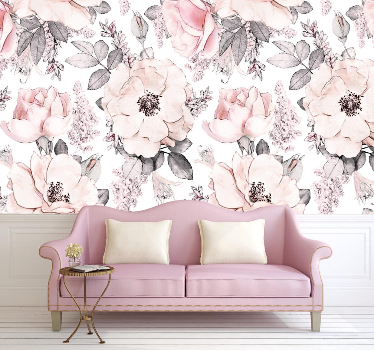 Цветастая отделка стен чаще всего используется в стиле прованс или ассоциируется с привычным деревенским уютным домиком.