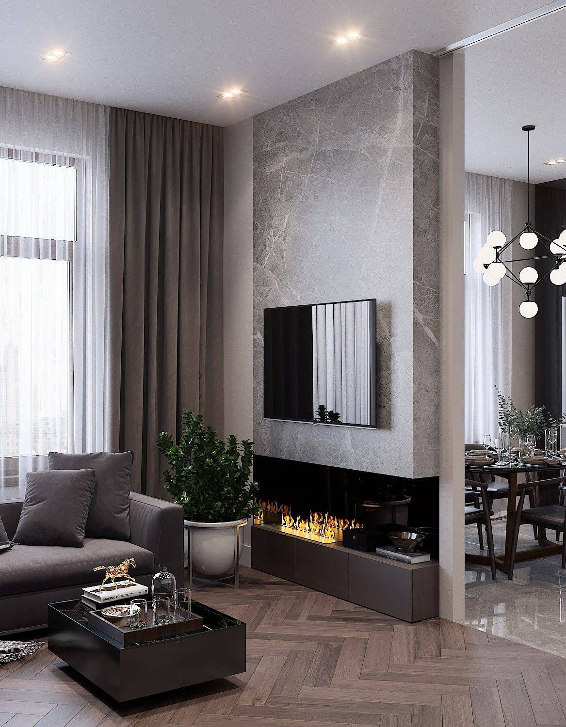 Акцентная стена в современной гостинойИсточник hzcdn.com