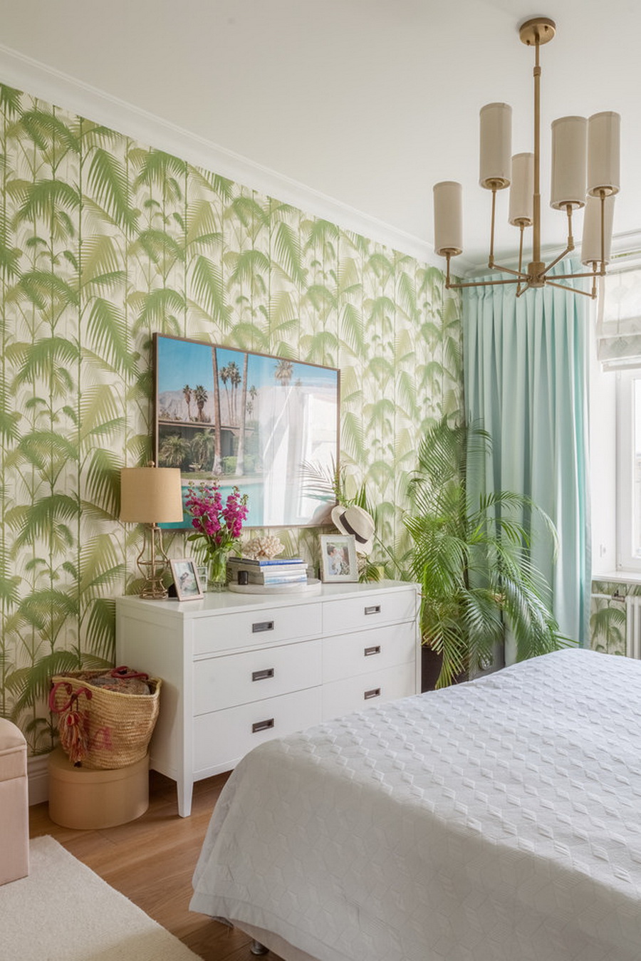 Модными останутся и обои с интересными принтами. Такой вариант отделки стен поможет придать свежесть и изюминку вашей комнате.