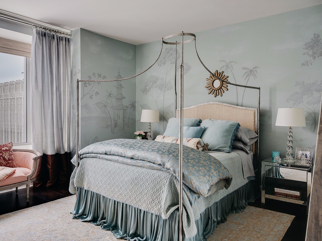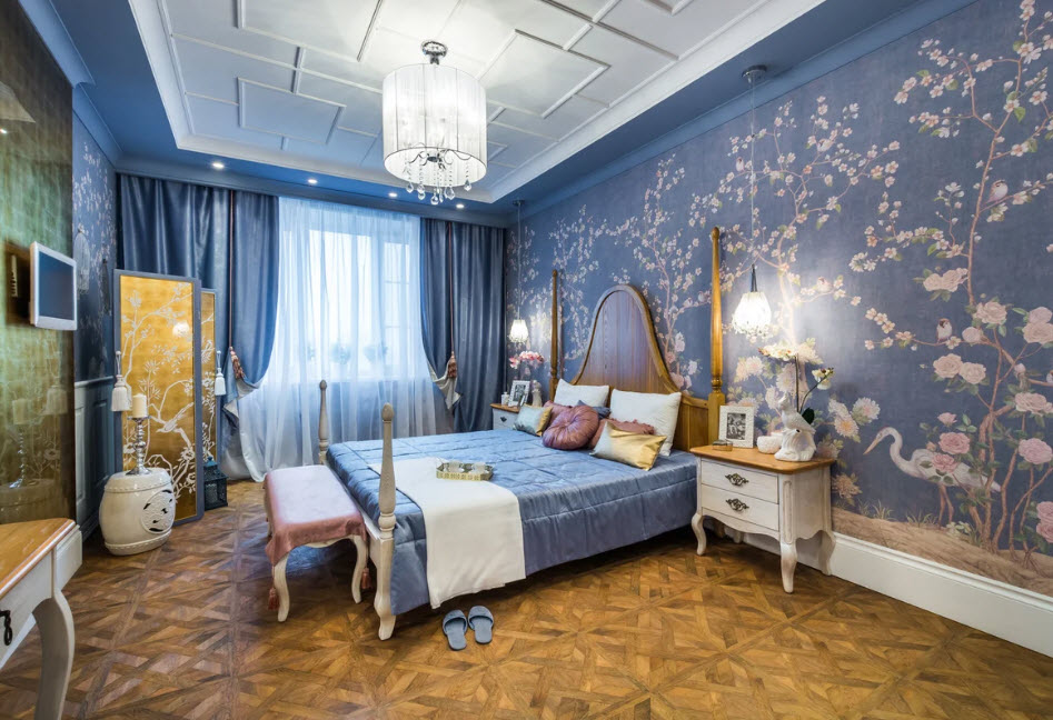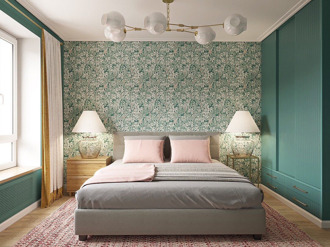 - Мелкие цветочки — хороши в романтичном нежном интерьере, выполненном в классическом, английском или французском стилях. Прекрасный вариант для спальни романтичной барышни;