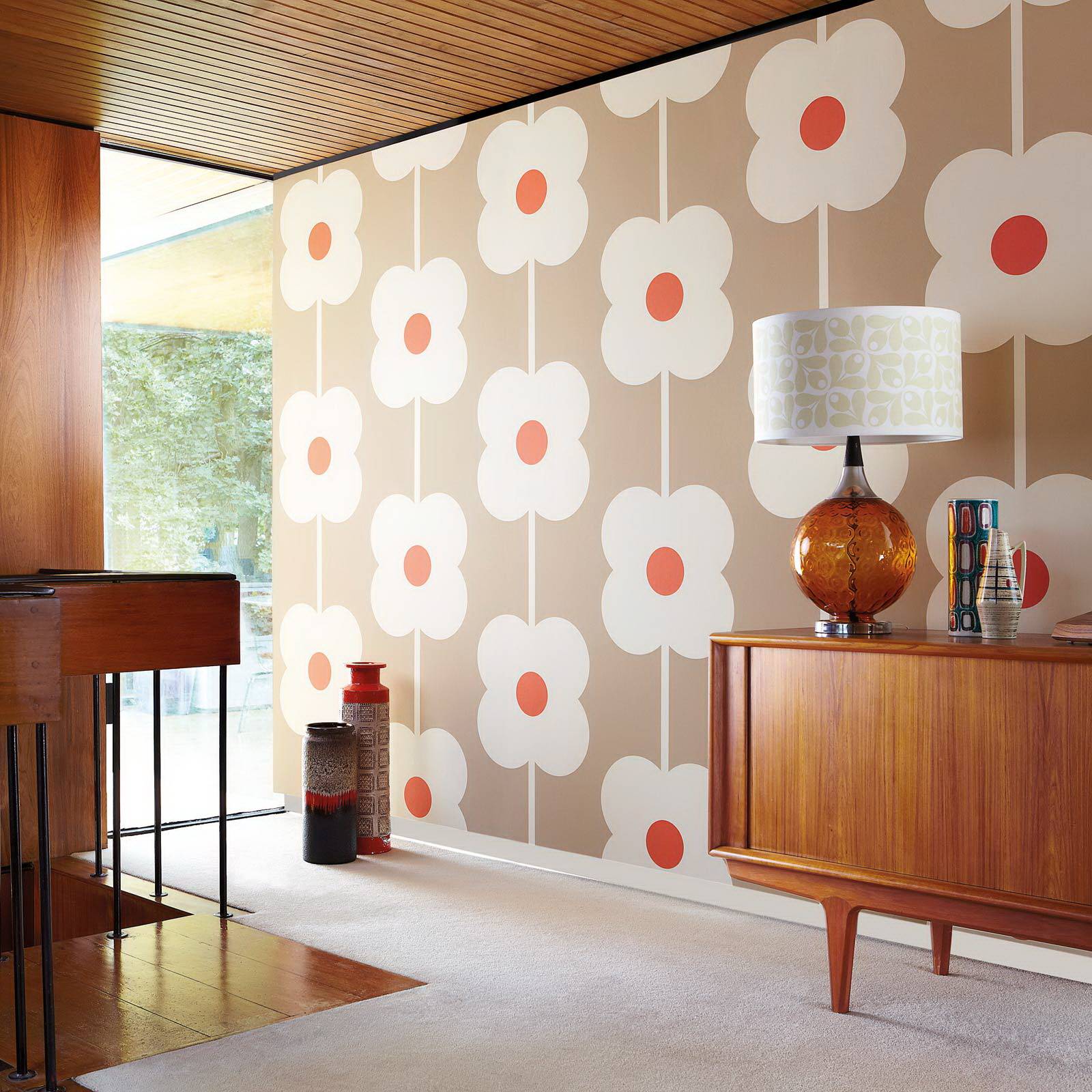 - Яркие цветы крупной формы — как правило, это вариант фотообоев, применяющиеся для оформления акцентной стены в зале, спальне или обеденной зоны большой кухни. Эффектно смотрится в сочетании с тёмной сочной цветовой палитрой при условии достаточного яркого солнечного освещения. В ином случае помещение будет смотреться тёмным и тяжёлым;