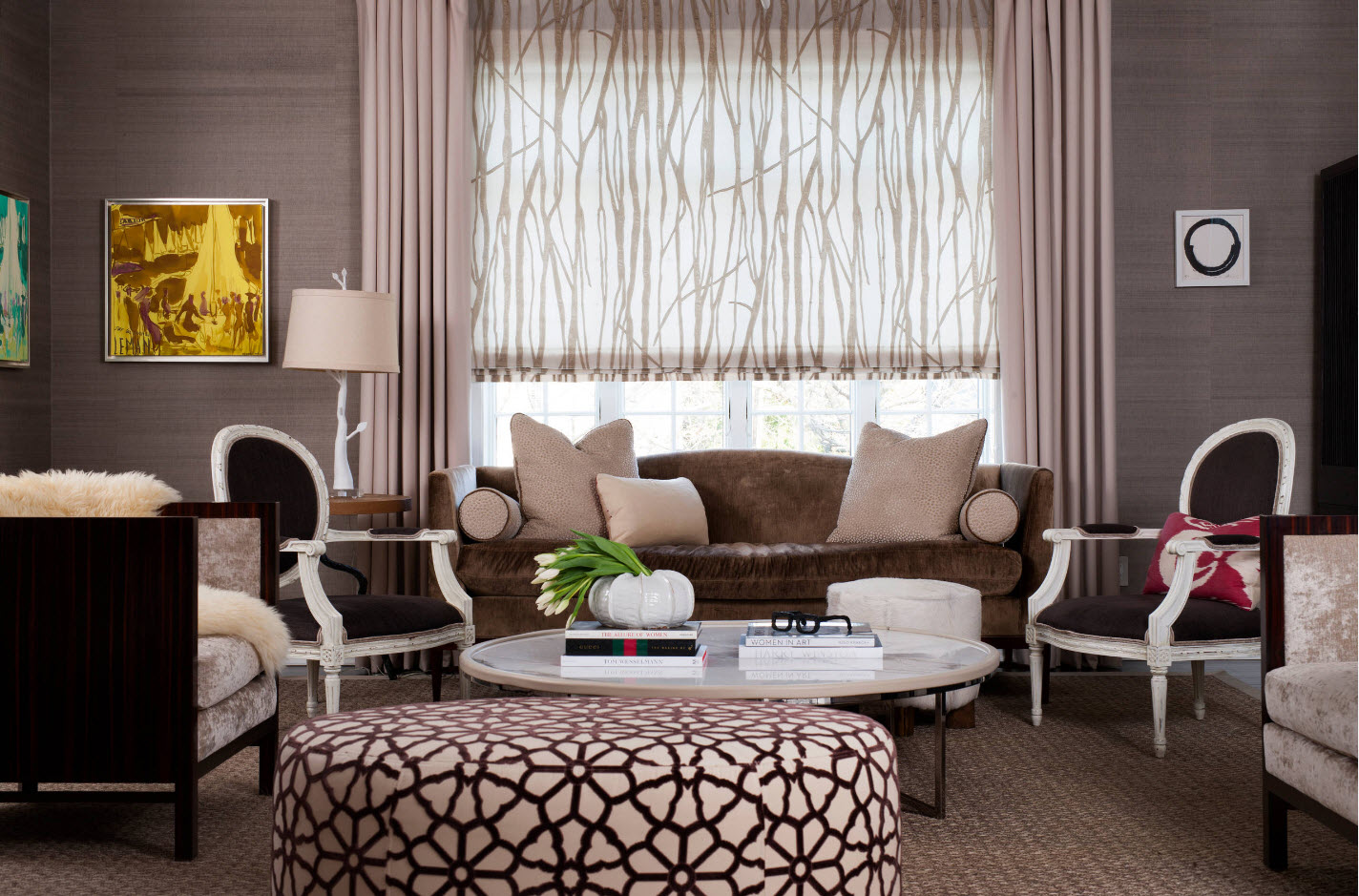- Количество окон и дверей. Если в гостиной несколько дверных или оконных проемов, лучше предпочесть обои с ненавязчивым орнаментом. Сложный, насыщенный паттерн, перебиваемый оконными и дверными «вставками» способен создать эффект мельтешения, и интерьер будет восприниматься загруженным.