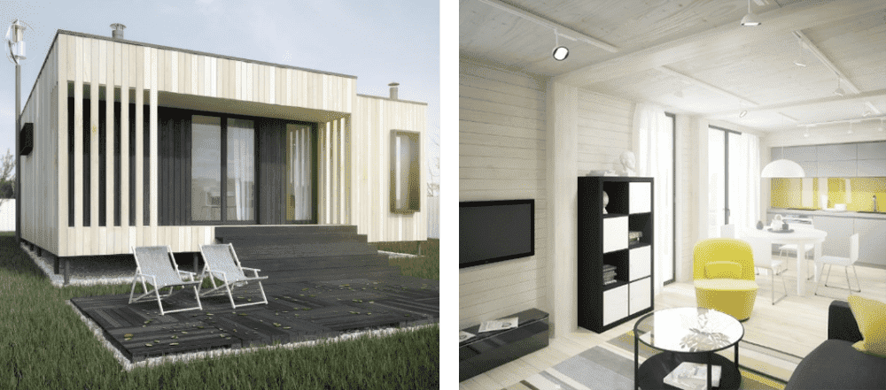 - Низкая стоимость. Благодаря простой технологии строительства и низкой стоимости стройматериалов цена на модуль дом почти в два раза ниже, чем на бетонные или кирпичные аналоги.