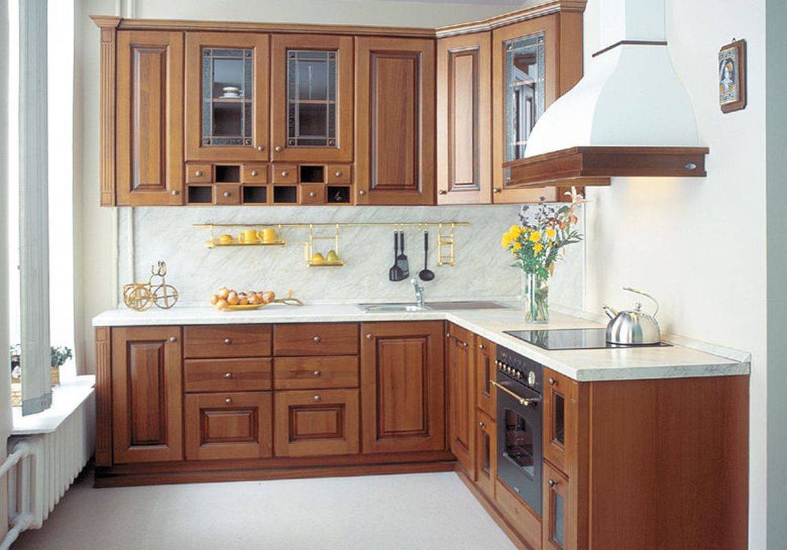 - Кухни угловые Угловые кухни бывают двух типов: U-образные и L-образные — и больше подходят для просторных кухонь. Но зачастую владельцы маленького кухонного помещения отваживаются на установку углового гарнитура, и такое решение бывает оправданным.Угловые модули хороши тем, что на них можно разместить много бытовой техники и кухонной утвари. А еще на таких кухнях часто делают барную стойку или используют одну из столешниц в качестве обеденного стола.