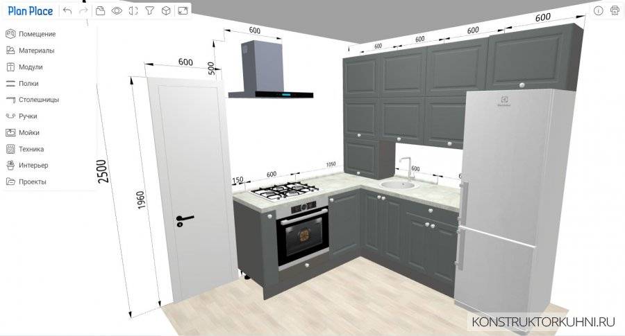 Для планирования других параметров стенки тоже принимают стандартные размеры кухонных модулей: