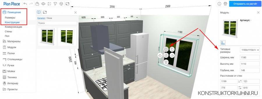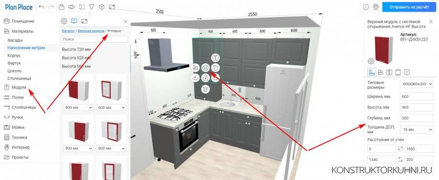 После того, как вы нарисовали кухню, вы можете узнать ее цену в Москве. Для этого нажмите на кнопку “Отправить на расчет”, после этого с вами свяжется менеджер московской мебельной компании.