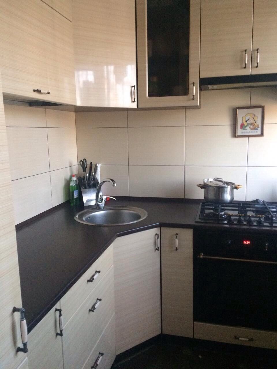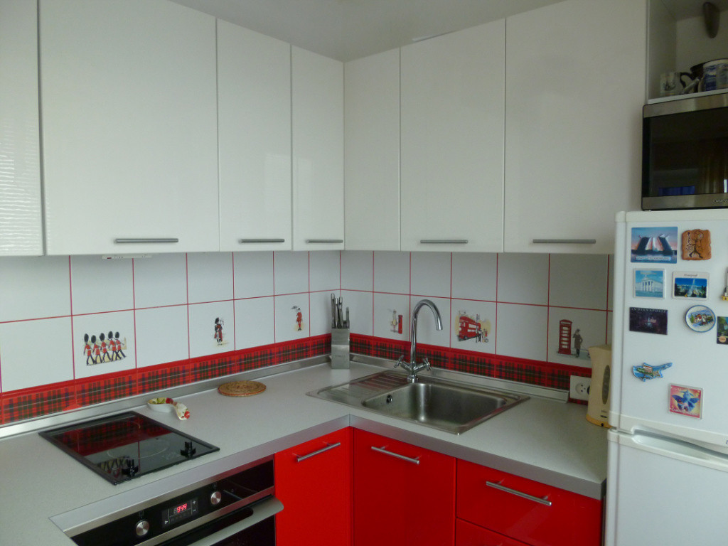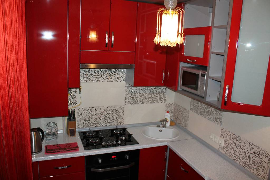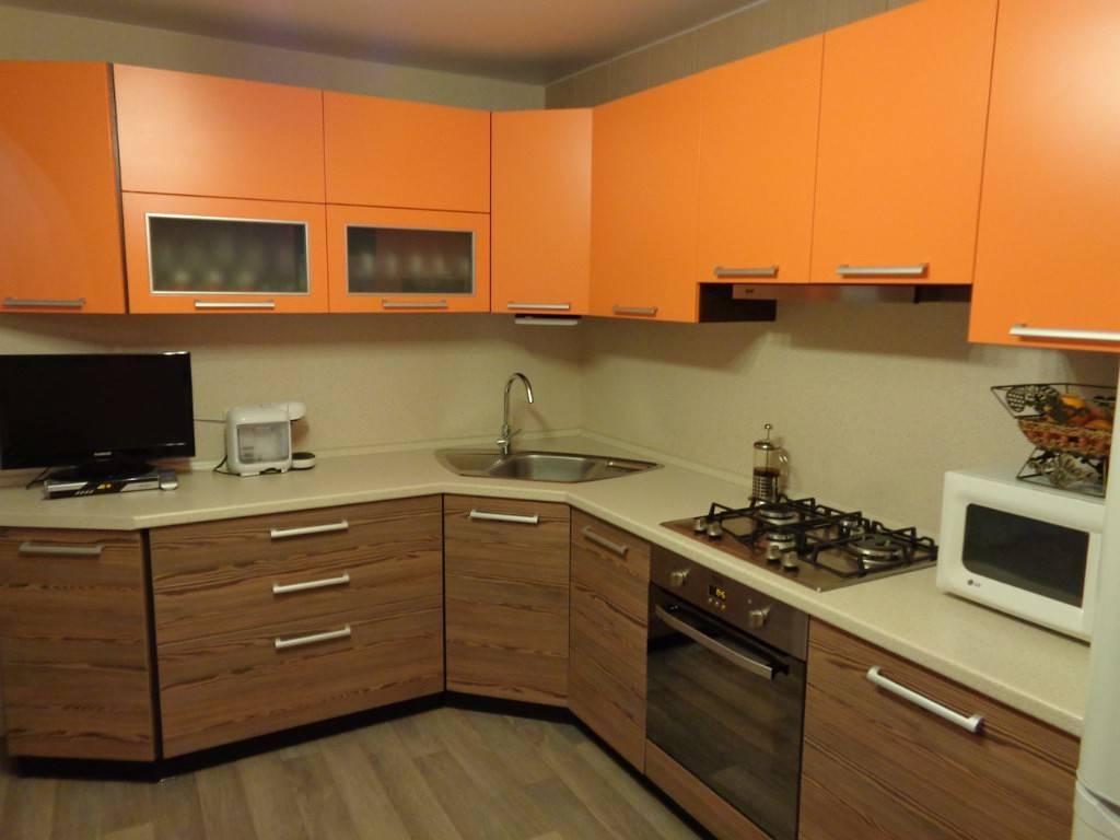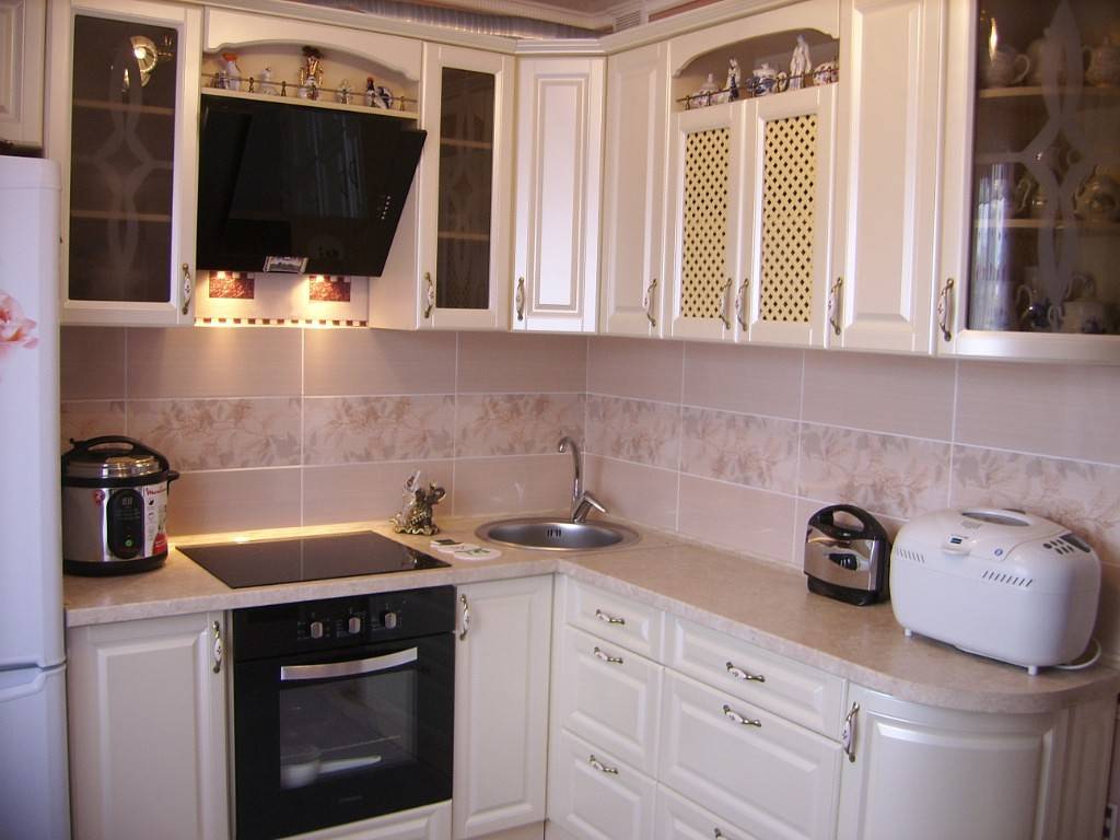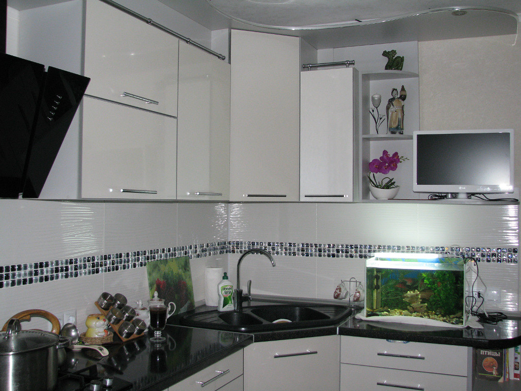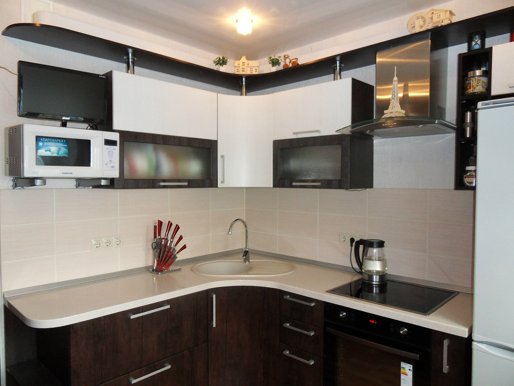 Небольшая кухня очень хорошо сочетается с угловой мойкой.