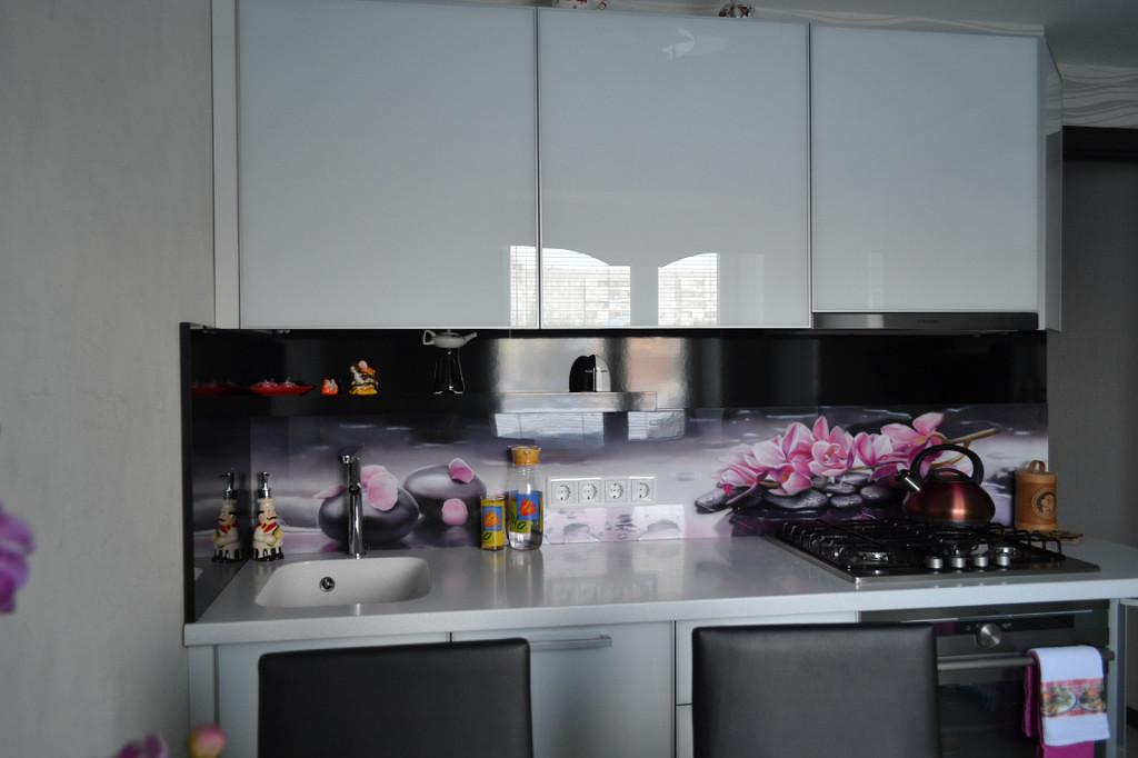 По цветовой гамме рекомендуется выбирать светлые оттенки – это может быть белая мойка для компактной кухни или модель цвета металлик. Черная мойка для кухни такого размера тоже подойдет, однако столешница должна быть светлой.