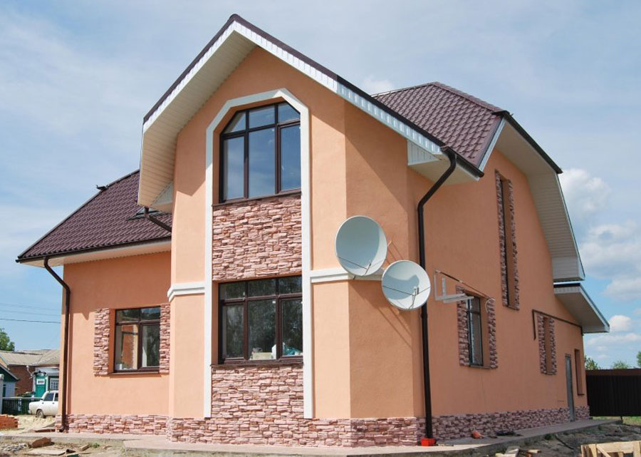Главное преимущество строения штукатурного фасада – практичность всей конструкции и надёжность.