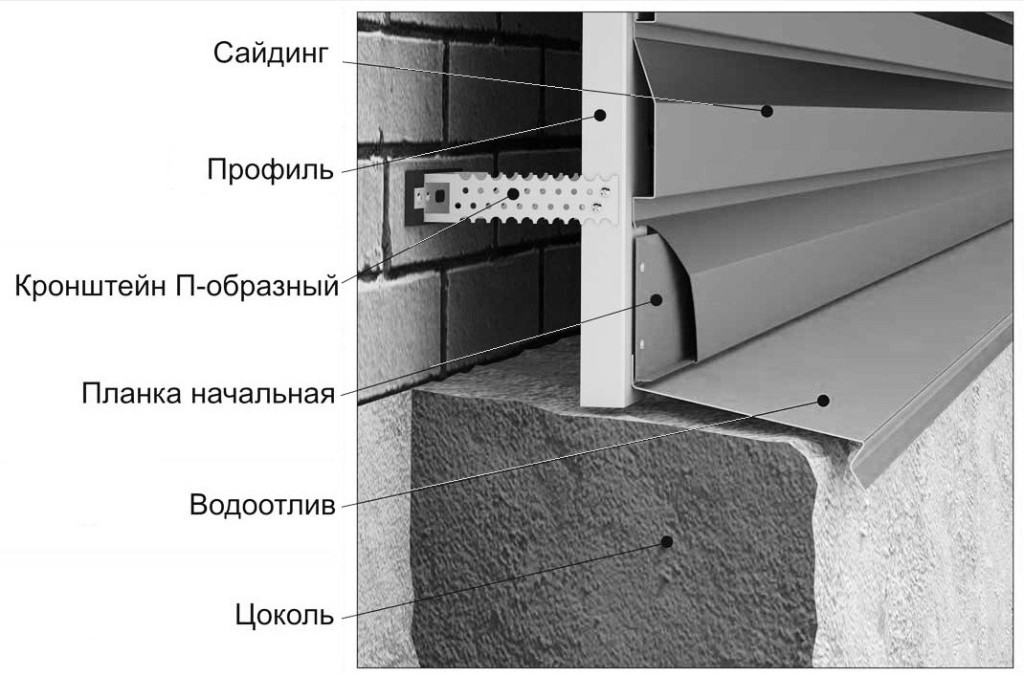 Схема установки стартовых полос и углового профиля при укладке сайдинга от земли