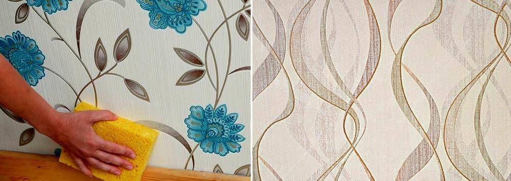 Эта разновидность обоев при правильном нанесении хорошо пропитана клеящим составом, поэтому они моются и даже чистятся с небольшим механическим усилием. Если клеили не по технологии, или обои очень старые, лучше не давить сильно на губку.