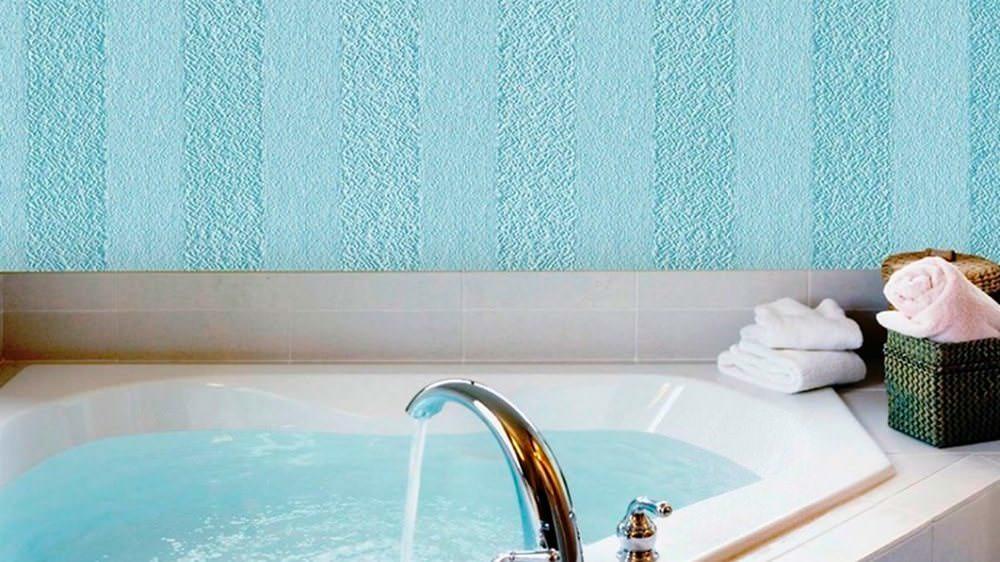 Отделка стен в ванной комнате стекловолокнистыми обоями