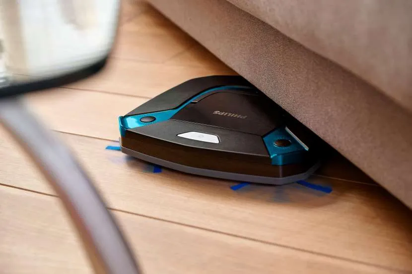 - Philips FC8794 SmartPro Easy. Выделяется нетрадиционной квадратной формой и высотой менее 6 см; в работе ориентируется по ИК-датчикам. Заряд аккумулятора рассчитан на 105 минут, работает тихо; подходит для ежедневного поддержания чистоты, минус – может «заблудиться» (иногда не сразу находит базу).