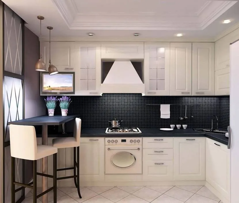 Черно-белое сочетание цветов в оформлении фартука из мозаики