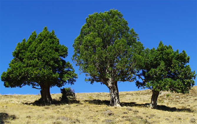 Редкий вид – можжевельник высокий (Juniperus excelsa) . В основном встречается в Азии, Крыму, на Кавказе. В молодости он растет в виде большого и широкого куста со столбчатой структурой, у более старых экземпляров – сложная, иногда куполообразная крона. Дерево может достигать 25 метров. Чаще встречаются кусты, достигающие примерно 3-5 метров в высоту, с широкояйцевидной формой. Лучше растет на песчаной, не очень плодородной, умеренно влажной почве.