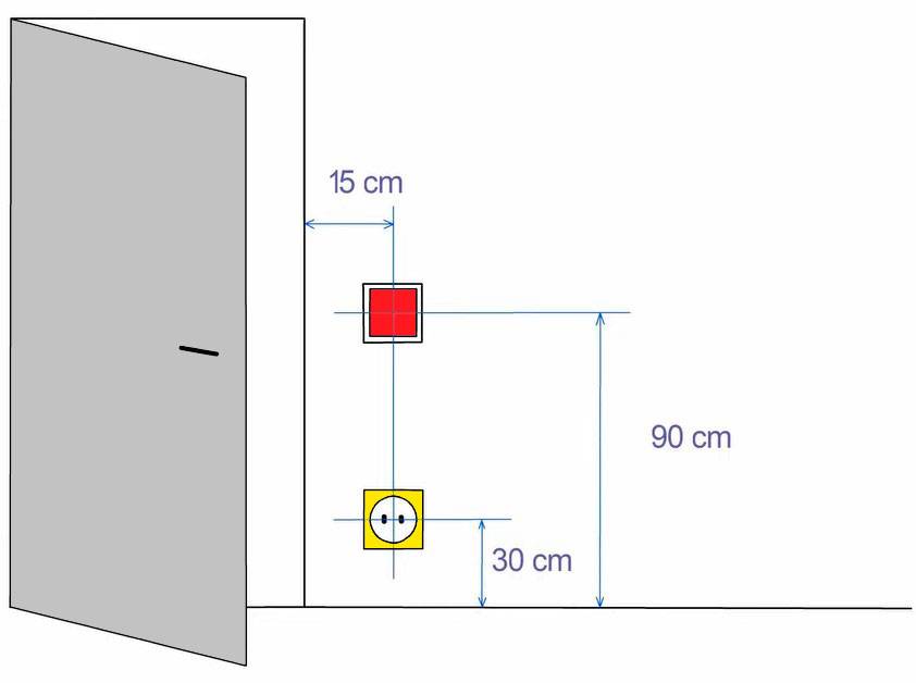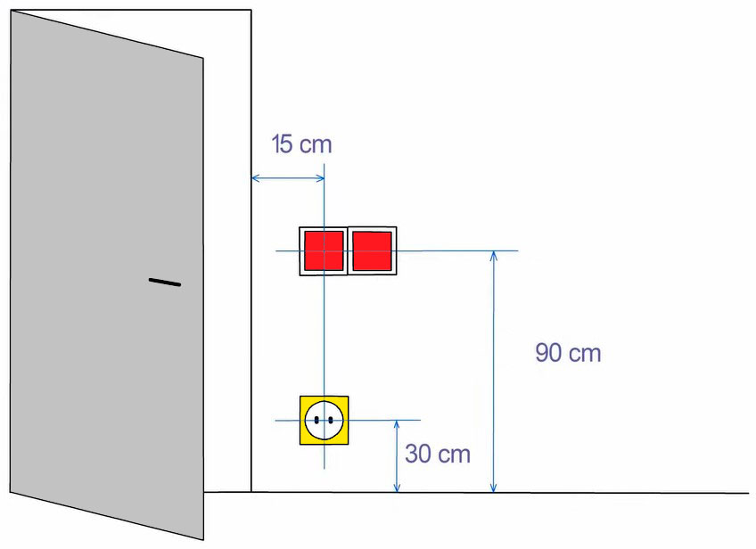 Чтобы обеспечить достаточное место для дверного наличника, выключатель отодвигают на расстояние 15см от чернового края дверного проема.