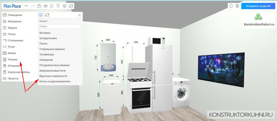 После того, как вы нарисовали кухню, вы можете узнать ее цену в Москве. Для этого нажмите на кнопку “Отправить на расчет”, после этого с вами свяжется менеджер московской мебельной компании.