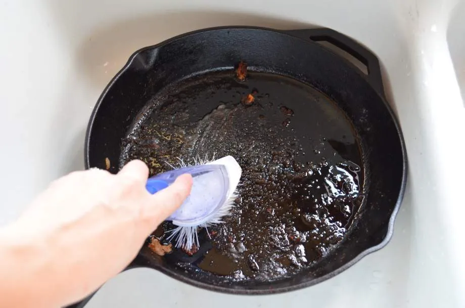 Очистка чугунной сковороды при использовании растворенной соды в воде