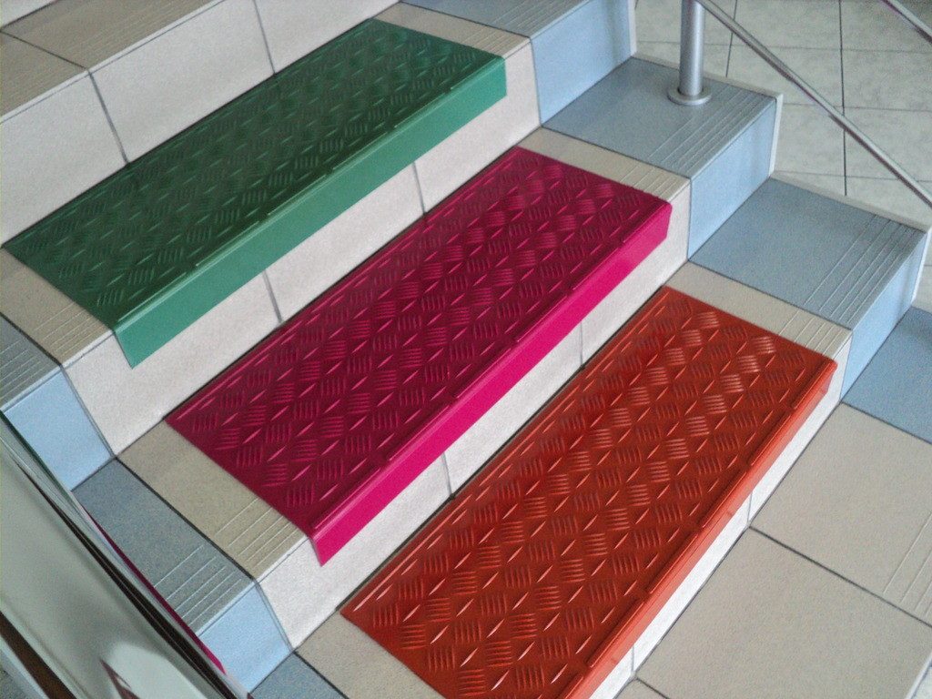 Существуют также противоскользящие накладки на ступени из материалов, не притягивающих пыль, поэтому они хорошо работают даже в домах аллергиков.
