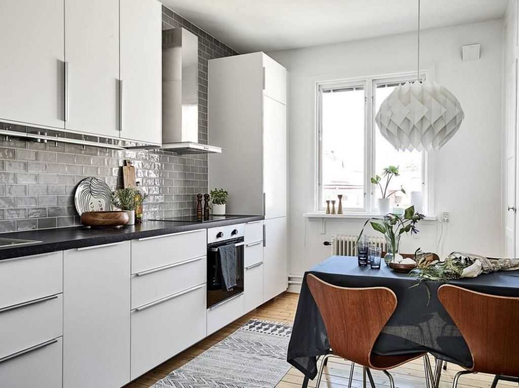 Белая плитка для кухни также была популярна в течение нескольких сезонов. Он вписывается в тренд кухни в скандинавском стиле, но будет хорошо смотреться в любом интерьере. Современная плитка для кухни в белом оттенке может принимать форму “метро” или имитировать дерево.