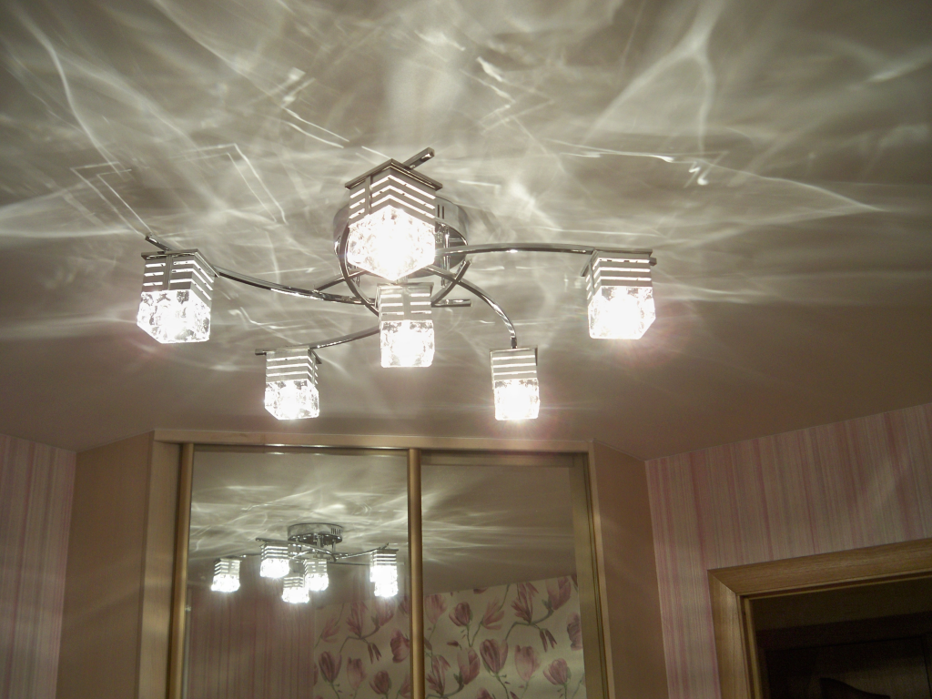 Люстрами. Украсить кухню с натяжным покрытием, обладающим светоотражающей способностью, можно красивой люстрой оригинальной формы.