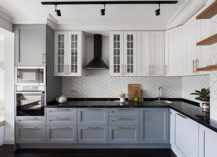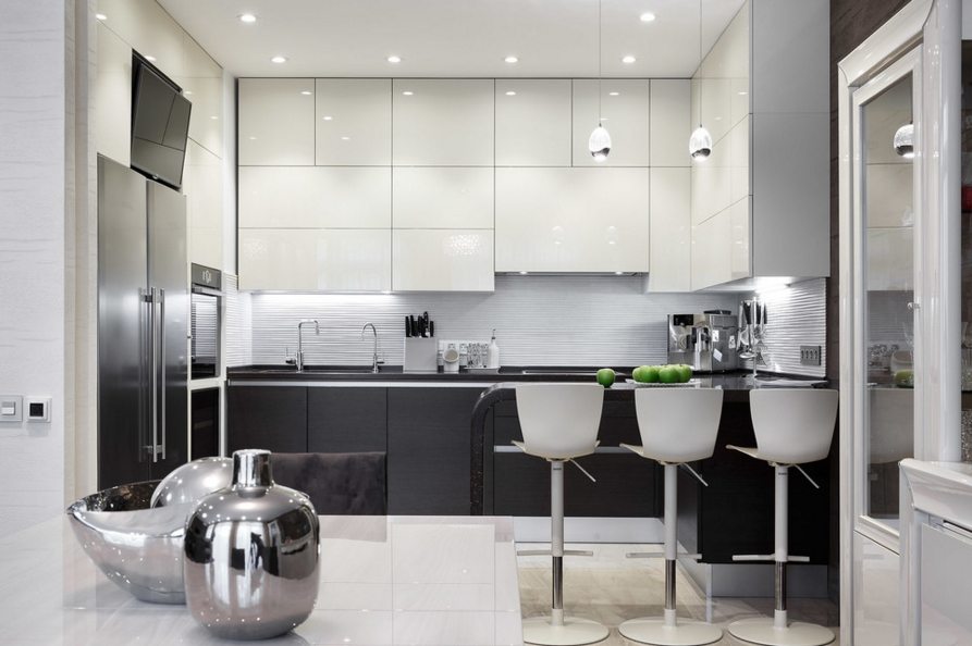 Для этого важно правильно разместить светильники, выбрать их количество и конструкцию. Есть несколько основных фактов, которые стоит учитывать при проектировании потолочного освещения в малогабаритной кухне