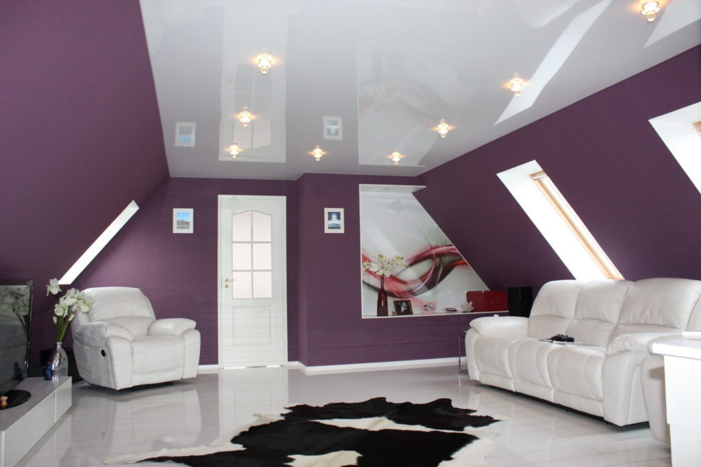 - отсутствие заметного блеска в случаях с любым типом натяжного полотна;