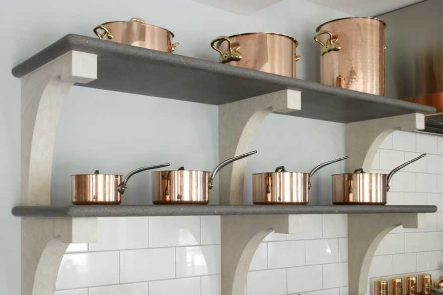 Кухонные полки из натурального или искусственного камня выглядят презентабельно, но дорого стоят