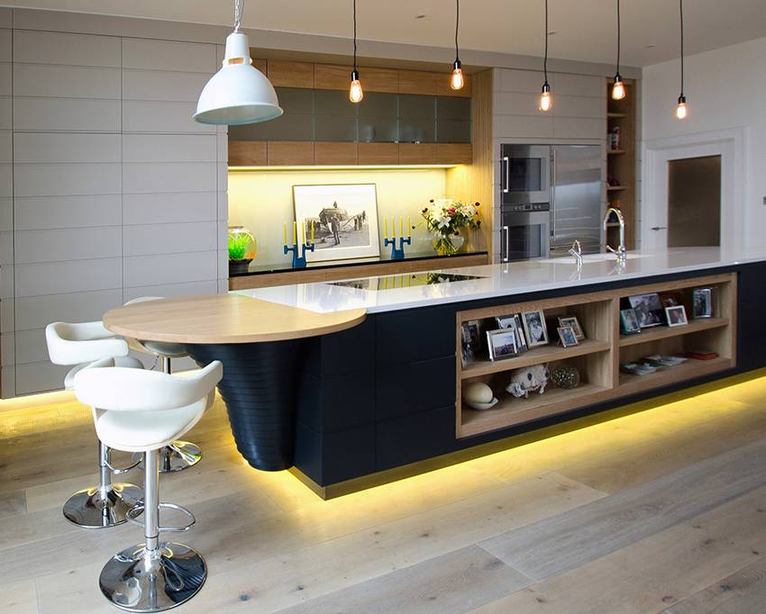 - Очень часто подобные элементы встречаются в современных вариантах мебели, что позволяет обустроить кухню, придерживаясь последних модных веяний.