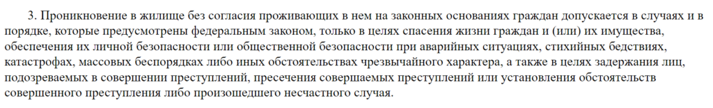 Основываясь на ст. 25 Конституции РФ, проникнуть в чужое жилое помещение можно только при наличии таких условий, как: