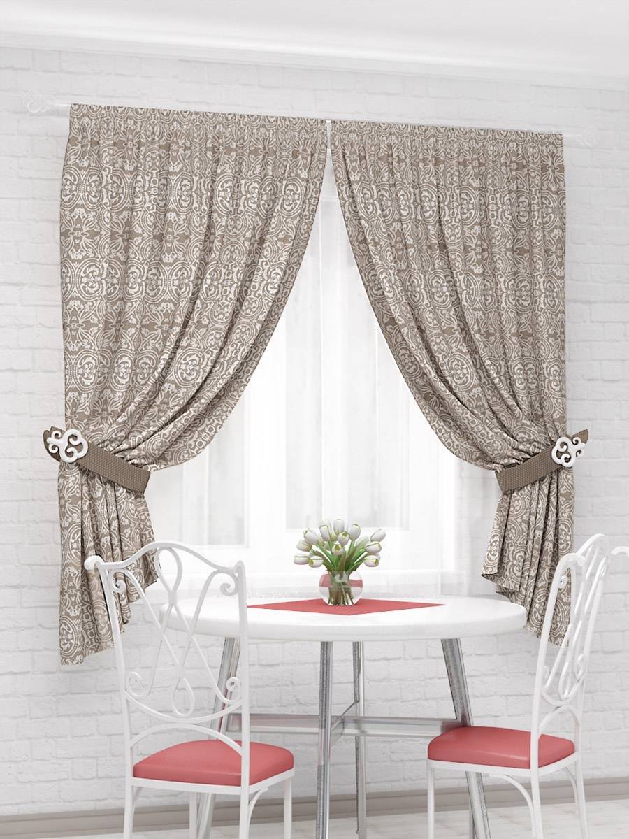 Хорошо смотрится на кухонных шторах мелкий рисунок.