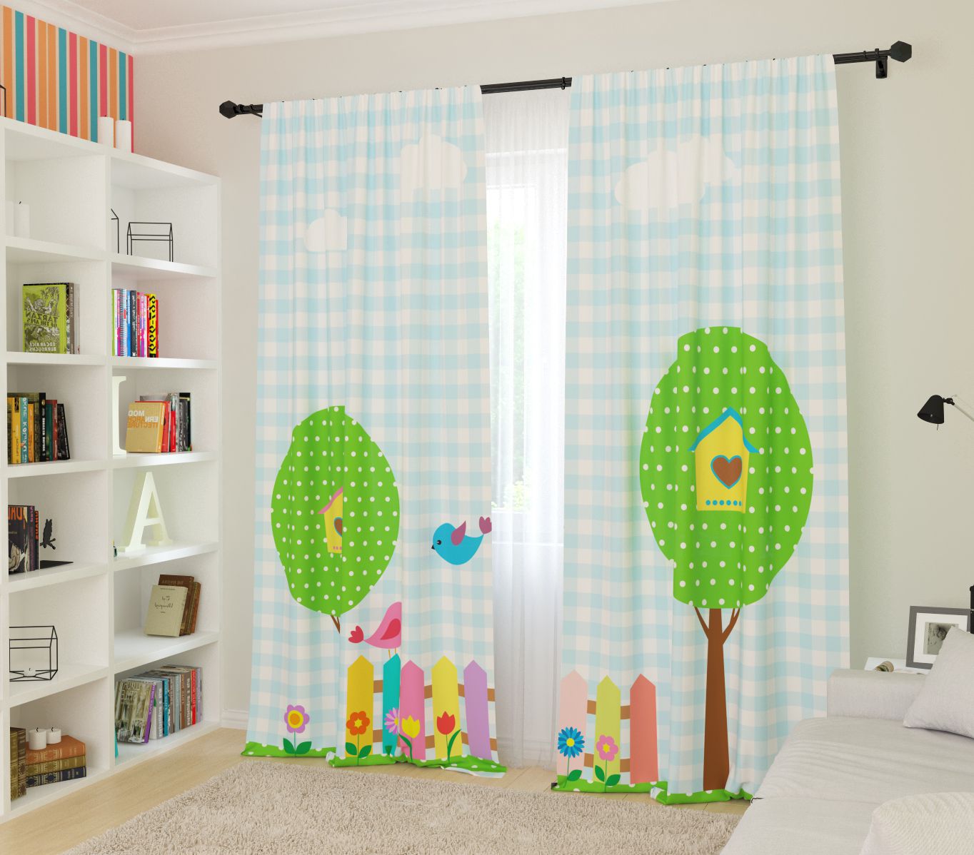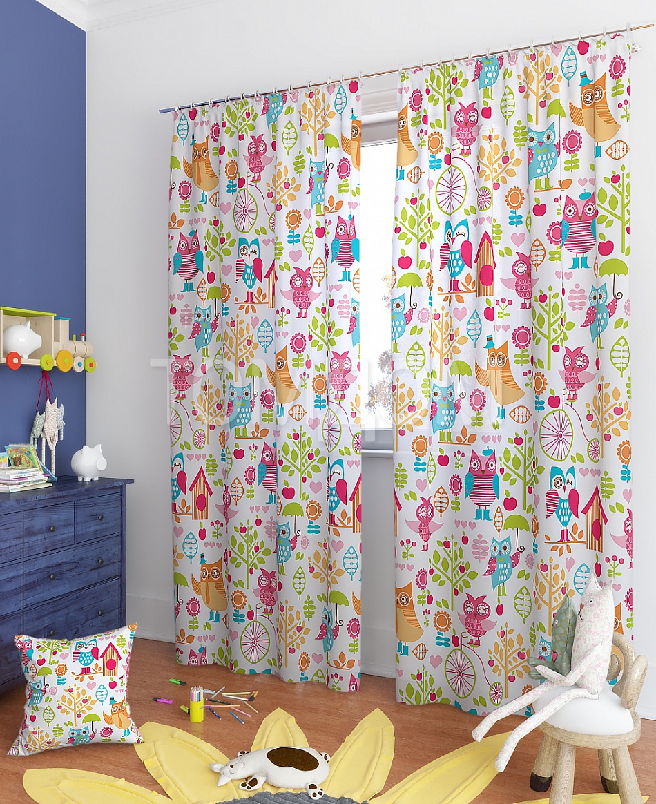 В детской часто используется яркий текстиль (натуральные, дышащие ткани: лен, хлопок). Рисунок на занавесках может быть любой, главное, чтобы он нравился ребенку.
