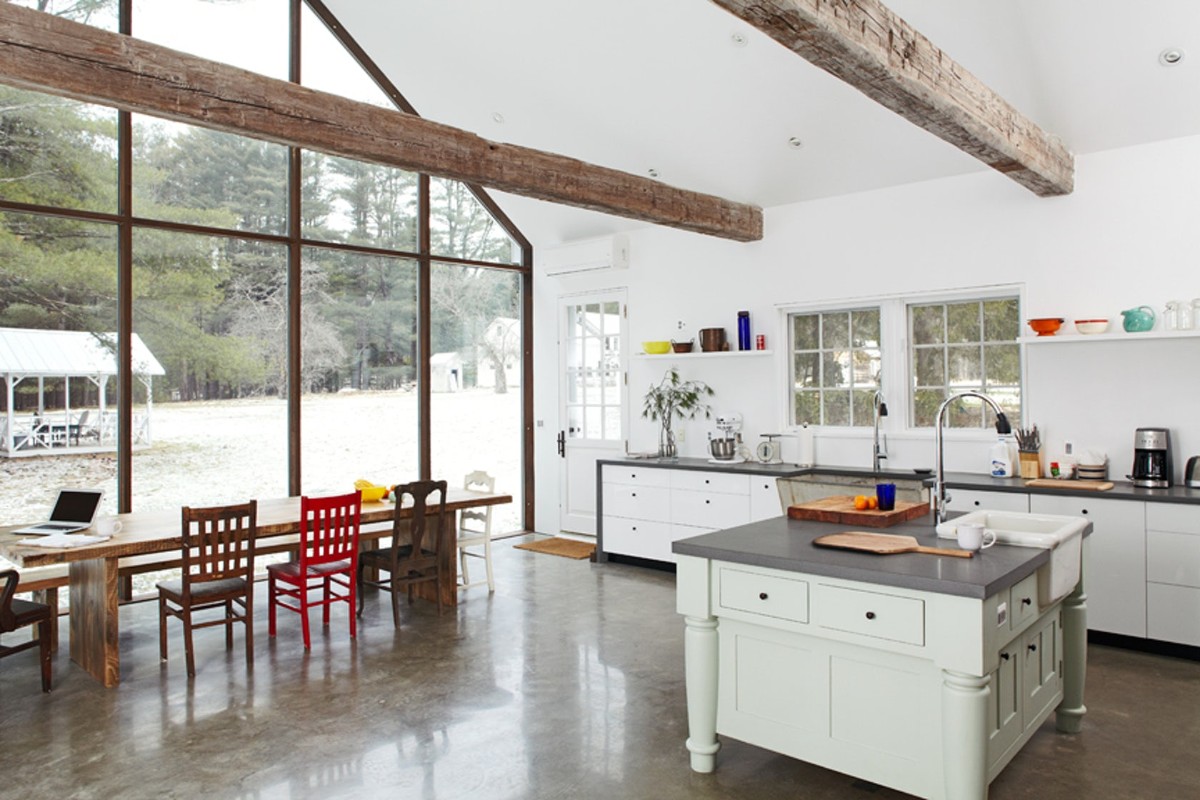 Стекло. Стеклянные столы в интерьере кухни занимают особое место. Они смотрятся очень изысканно и могут украсить собой любую кухню. В кухне-столовой большого размера они подчеркнут эксклюзивность и добавят блеска, а в маленьких помещениях благодаря эффекту «невидимки» не будут занимать много места.
