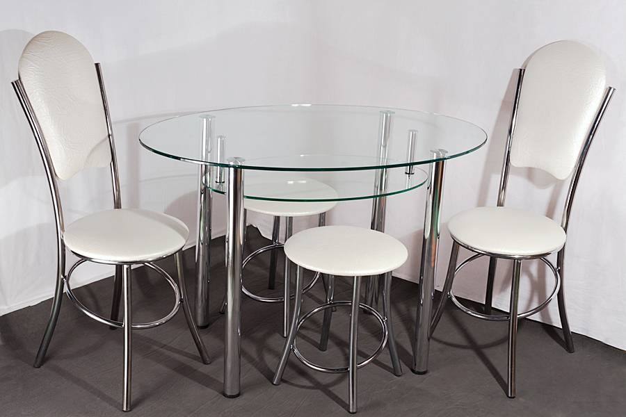 Круглый стол из стекла для маленькой кухни