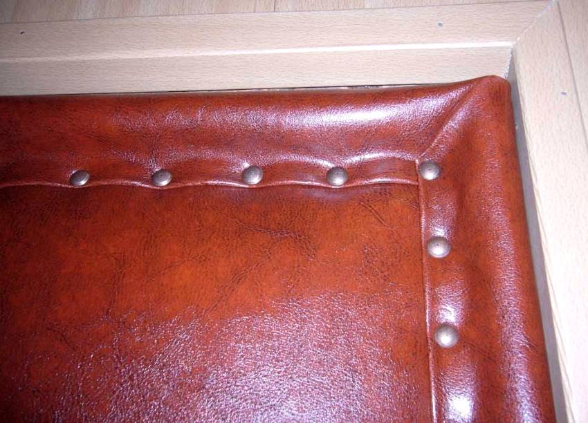 Выбрать качественный, подходящий по цвету дермантин, который еще называют «искусственная кожа» сейчас не проблема. Кстати, качественный дермантин должен немного пружинить при растягивании. Утеплителей тоже имеется в продаже предостаточно. Есть пенопропиленовые рулонные утеплители различной толщины. Они очень удобны в работе. И все остальное также приобретается по отдельности. Также, никто не отменял творчество, наоборот, только приветствуется. Всегда можно придумать и применить что-то свое. Наша задача предупредить начинающих мастеров от ошибок и помочь тем, кто делает первый раз, т.е. дать основу классической технологии. Дальше человек будет усовершенствовать уже сам.