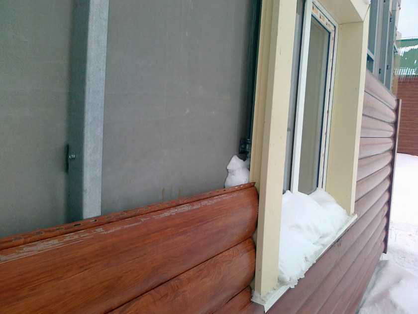 - проемы предварительно отделываются при помощи горизонтального наличника, по которому вода будет отводиться от фасадной конструкции.