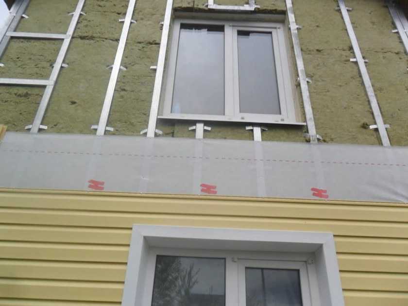 Утеплитель укладывается между направляющих каркаса, который набивается под рассматриваемый отделочный материал для фасада частного дома. Далее поверх него настилается еще один слой гидроизоляции. Причем все делается так, чтобы между мембраной и теплоизолятором на стенах дома оставалась воздушная подушка.