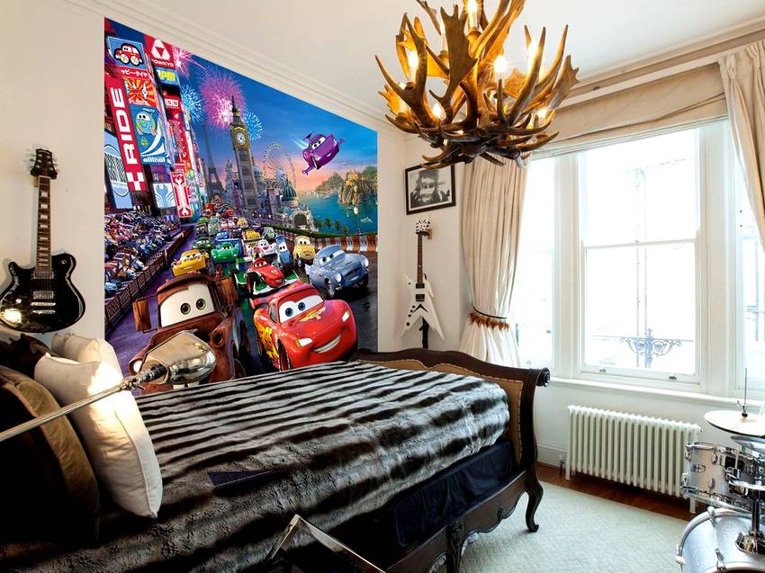 Подбирать обои лучше, отталкиваясь от интересов и увлечений конкретного ребенка. Существует множество тематических сюжетов, которые можно задействовать в оформлении.