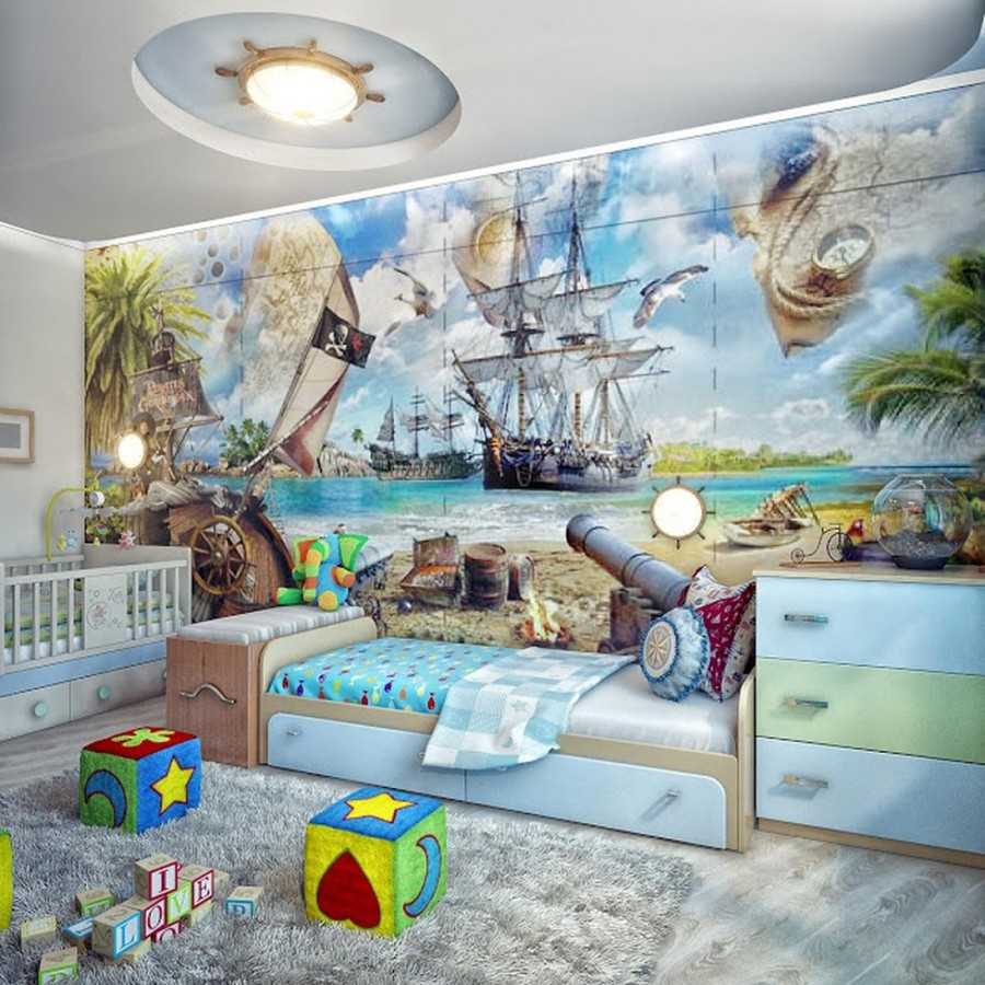 Природа – универсальная тема. Моря, озера, водопады, солнечные пляжи – все это отлично оживит комнату подрастающего мальчика.