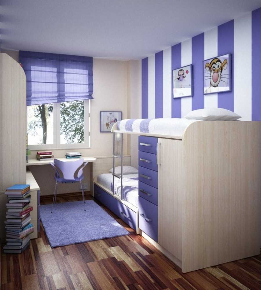 - Фиолетовый. Чарующий и волшебный цвет. Выбирать слишком яркий оттенок не стоит, поскольку он сделает комнату темной и замкнутой.